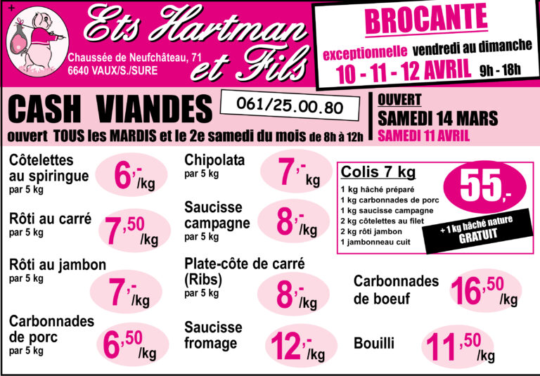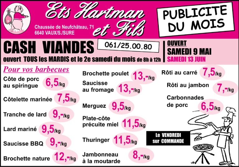 Situé à Vaux-sur-Sûre depuis sa création, l'entreprise Hartman &Fils est fier de présenter sont produit d'origine Ardennaisse.
